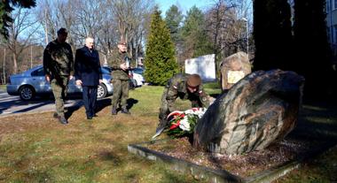 Starosta Legionowski Sylwester Sokolnicki, w towarzystwie Komendanta Centrum Szkolenia Łączności i Informatyki płk. Roberta Kasperczuka, złożył kwiaty pod pomnikiem poświęconym żołnierzom związanym z zegrzyńską szkołą i jednostką łączności, którzy zostali rozstrzelani przez bolszewicki aparat bezpieczeństwa w ramach zbrodni katyńskiej.