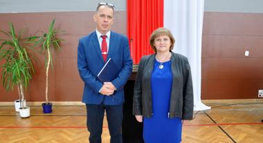 Przewodniczący Rady Powiatu Leszek Smuniewski oraz wicestarosta legionowski Konrad Michalski złożyli gratulacje Mariuszowi Suwińskiemu, nowemu dyrektorowi LO im. M. Konopnickiej w Legionowie