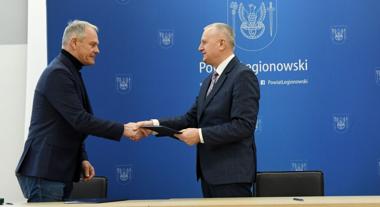 Uroczyste podpisanie umowy na rozbudowę drogi powiatowej nr 1822W ul. Wspólna w gminie Wieliszew, na odcinku od ul. Przedpełskiego do DW 632, wraz z budową ronda, zorganizowano 3 marca w siedzibie Starostwa Powiatowego w Legionowie.