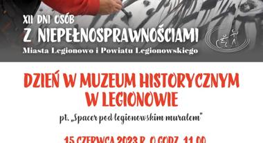 Organizatorzy XII Dni Osób z Niepełnosprawnościami Miasta Legionowo i Powiatu Legionowskiego zapraszają na Dzień w Muzeum Historycznym w Legionowie Spacer pod muralem. Wydarzenie odbędzie się 15 czerwca br., zbiórka przy przejeździe kolejowym Legionowo Piaski” o godzinie 11.00.
