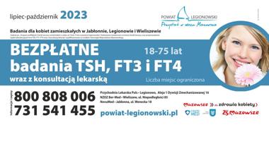 Program profilaktyki chorób tarczycy wśród kobiet w wieku od 18 do 75 lat w powiecie legionowskim ma na celu podniesienie świadomości na temat chorób tarczycy oraz przeprowadzenie badań laboratoryjnych krwi TSH, FT3 i FT4 wraz z konsultacją lekarską.