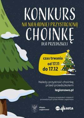 Urząd Miasta Legionowo zaprasza społeczności miejskich przedszkoli do udziału w konkursie na najładniej przystrojoną choinkę przed budynkiem przedszkola. Ta nowa w naszym mieście inicjatywa ma na celu nie tylko rozwijanie kreatywności, ale także budowanie atmosfery radości i wspólnoty przed zbliżającymi się świętami.