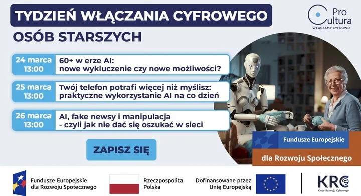 - 24 marca (13:00–14:30) – debata „60+ w erze AI: nowe wykluczenie czy nowe możliwości?”
